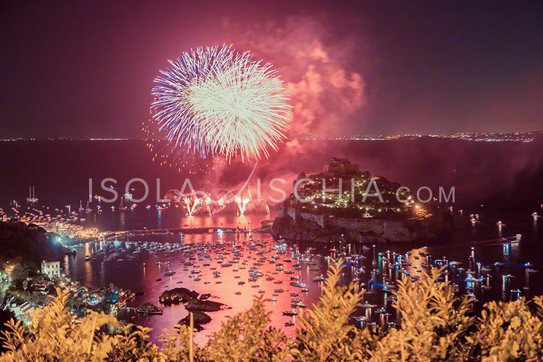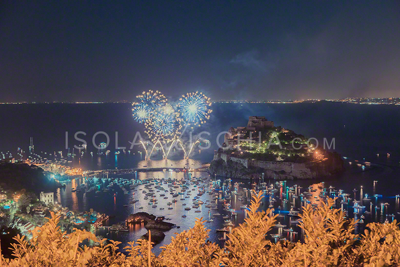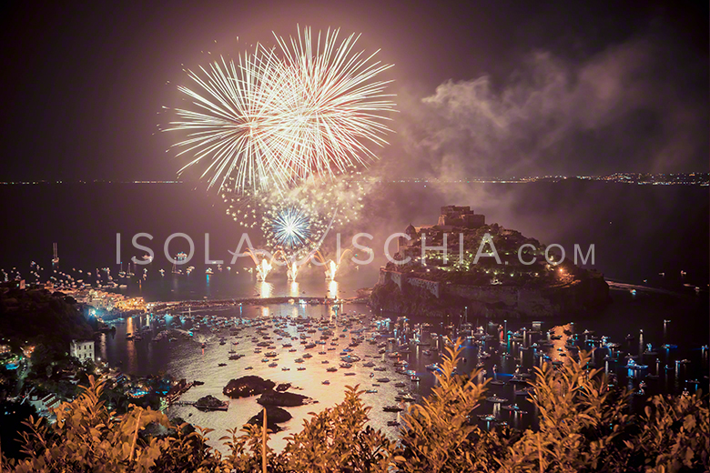 La notte della festa di Sant’Anna è ricca di magia e lascia il segno nel cuore degli ischitani e nel cuore di chi, ischitano, lo diventa proprio assistendo allo spettacolo di quella notte. Nella notte del 26 di luglio, la baia di Cartaromana si veste a festa diventando un teatro sul mare sotto le stelle.