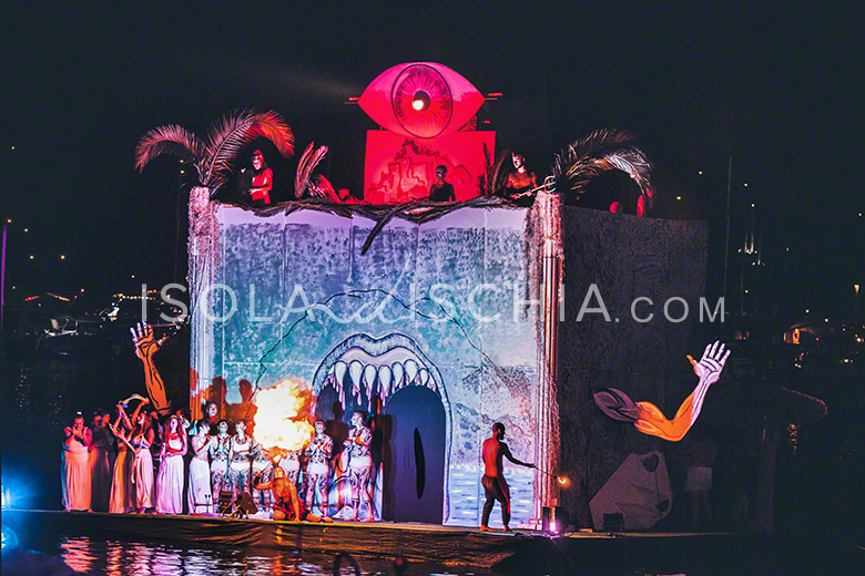 Gruppi di ischitani appartenenti a diverse contrade o comuni, realizzano delle scene su alcune imbarcazioni che sfilano dinanzi a migliaia di persone assiepate tutt’intorno sugli scogli e sulle barche per assistere allo spettacolo. Solo una, scelta dalla giuria, alla fine della serata, si aggiudicherà il palio tra gli applausi della folla e uno spettacolo di fuochi tra il castello e il mare.
