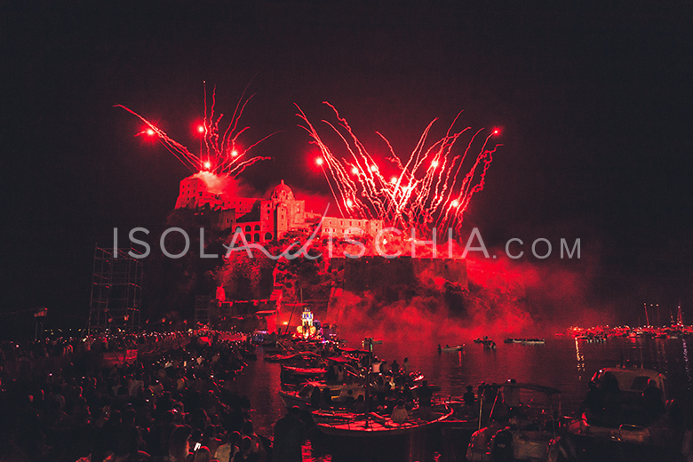 Avete a disposizione una barca? Radunate famiglia e amici allora e occupate un buon posto nella baia che già da prima del tramonto inizierà a riempirsi di barche provenienti da ogni dove. Non meravigliatevi se dalla barca accanto arriva un odorino di coniglio alla cacciatora, mangiarlo la notte di Sant’Anna è un’altra delle tradizioni della festa. Per chi non ama star seduto per più di un’ora, non temete, passeggiando sul Pontile Aragonese o nel borgo antico di Ischia Ponte riuscirete comunque ad assaporare l’atmosfera della festa, ma mi raccomando al gran finale, ovunque voi siate alzate gli occhi al Castello, lo vedrete più bello che mai.