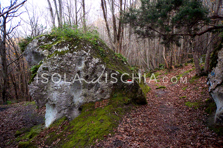 Arrivati nello spiazzale antistante il ristorante il Bracconiere – siamo nel comune di Serrara Fontana – si comincia a camminare per raggiungere la cima del monte. Dall’alto s’ intravede già Forio e il suo mare, mentre, volgendo lo sguardo in su è la vetta del monte Epomeo che da qui ci appare davvero vicina. La storia dell’isola rivive in questo sentiero in particolare nella pietra dell’acqua, un masso che è ancora lì, in quella zona, dove veniva raccolta l’acqua per irrigare quello che un tempo era il granaio dell’isola.