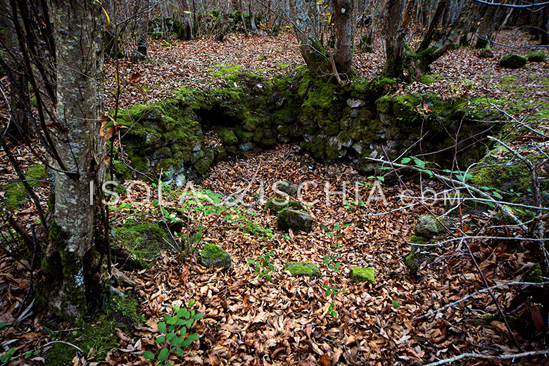 Continuando a passeggiare tra lecci e castagni troverete delle fosse scavate nel terreno, sono le fosse della neve, delle cavità dove un tempo veniva raccolta la neve che lì all’Epomeo era solita scendere nei mesi più freddi dell’inverno. Chi frequentava quelle zone, s’ingegnò raccogliendola in quelle fosse per poi rivenderla sotto forma di ghiaccio per le granite che venivano vendute ai primi turisti che iniziavano ad affollare l’isola.