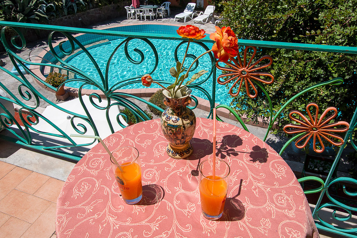 Alcune camere godono di una straordinaria vista sul mare, altre sulla piscina e sul grazioso angolo verde che la circonda e che offre un fresco riparo alle conversazioni negli assolati pomeriggi estivi, o una piacevole passeggiata durante la stagione più fresca.