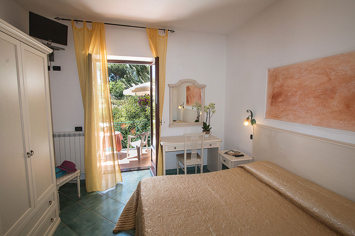 Ampie e luminose, questa camere sono dotate di letto matrimoniale. Molto curati gli arredi che nella loro semplicità risultano essere pratici e funzionali ed esteticamente piacevoli, a partire dalla scelta della biancheria fino alla mobilia. Le camere dispongono di servizio privato interno con cabina doccia, ampio balcone o terrazzo, alcuni anche con vista mare, TV, telefono e ventilatore, riscaldamento durante i mesi invernali.