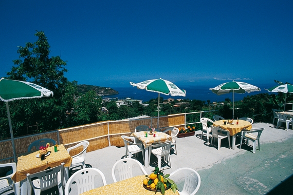 L’hotel dispone di un bar che condivide la medesima area del ristorante, quindi una stupenda veranda chiusa che si affaccia sullo spettacolare panorama. Il vero fiore all’occhiello però è il ristorante, grazioso con i suoi tavoli apparecchiati con cura e semplicità, offre una visuale spettacolare. La cucina è quella casereccia, fatta di cibi realizzati con grande attenzione soprattutto per la scelta delle materie prime. La vera cucina ischitana, e non solo, è servita in tavola declinata in gustose ricette: dai piatti rustici alle grigliate di carne e pesce fresco, pasta condita con sughi di pomodoro semplici e deliziosi, ma anche tante buone verdure e, non ultimi, i vini dell’isola di Ischia e della Campania continentale. Durante la settimana vengono organizzate piacevoli serate di piano bar, ottima musica live per rendere ancora più speciale la cena e il dopo cena.