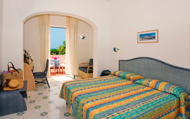 Si trovano nel corpo principale della struttura ricettiva, ampie e luminose, sono arredate in stile mediterraneo, con arredi semplici e funzionali. Il servizio è interno e privato, con phon e kit di cortesia, riscaldamento centralizzato e aria condizionata, cassaforte elettronica e ampia finestra che si affaccia, in alcuni casi, sulla meravigliosa Baia di Citara.