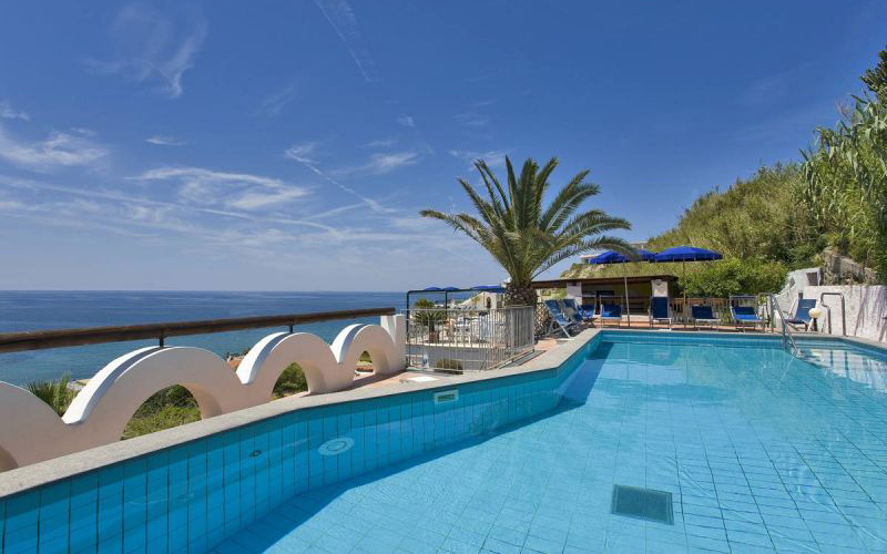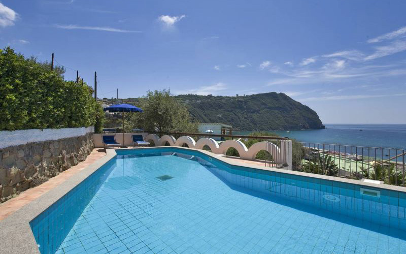 A disposizione degli ospiti due favolose piscine. Quella interna wellness è di recente costruzione, con doccia cervicale e idromassaggio, oltre a un’attrezzata area chaise-long. Alimentata con acqua geotermica. La piscina esterna, invece, sempre alimentata con acqua geotermica, ha una temperatura di 32° C e ha un solarium annesso con sdraio, lettini e ombrelloni. La sua posizione sopraelevata regala splendide vedute della baia e tramonti indimenticabili. Per trattamenti termali più completi si può fare un salto al Giardino di Poseidon, mentre per praticare dello sport si può fruire dei vicini campi da tennis convenzionati con istruttore a disposizione.