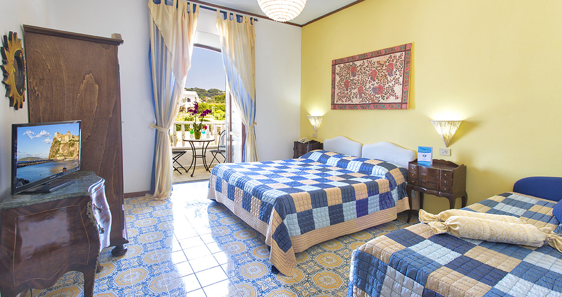 Queste sistemazioni hanno la peculiarità di affacciarsi, con terrazzo o balcone, su uno scenario pittoresco, le splendide acque del mare d’Ischia, che con la sua brezza profumata regala preziose sensazioni. Gli arredi, in stile mediterraneo, sono curati fin nel più piccolo dettaglio. Il bagno è privato, con vasca o doccia, telefono in camera, aria condizionata e riscaldamento centralizzato nei mesi invernali.