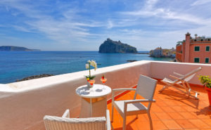 Sono 8 e si affacciano tutte sul suggestivo paesaggio connotato da Castel Aragonese. Ampia terrazza dotata di sdraio prendisole, sono ambienti ampi e luminosi, arredati con gusto classico e mediterraneo, curate nei dettagli e dotate di tutti i comfort, tra cui bagno interno con vasca-doccia, aria condizionata o riscaldamento.
