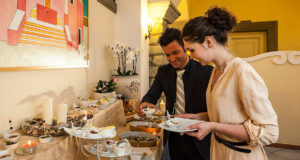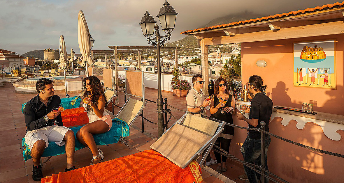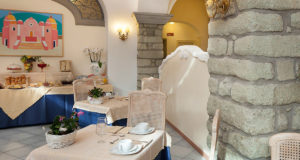 La colazione è curata fin nei dettagli e viene servita al buffet. Si possono trovare delle vere leccornie, dai menù salati, quindi uova, salumi, formaggi, ma anche menù dolce quali torte fatte in casa con ingredienti assolutamente genuini, frutta fresca e di stagione, yogurt, cereali, senza dimenticare l’ottimo caffè napoletano, cappuccini e altre bevande calde. Se invece si vuole consumare un pasto leggero a pranzo o uno snack, così come qualche gustoso drink, il bar Sunset con la sua splendida vista panoramica attende gli ospiti tutti i giorni nella sua terrazza.