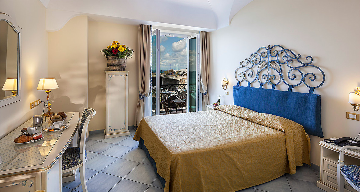Sono ampie e arredate con gusto moderno, fresco e rilassante, grazie alle tenui colorazioni pastello. Tutte queste camere sono dotate di un ampio balcone che si affaccia su una splendida vista mare. Il bagno è interno, con doccia. Tra gli altri servizi, TV sat, connessione wi-fi gratuita, aria condizionata.