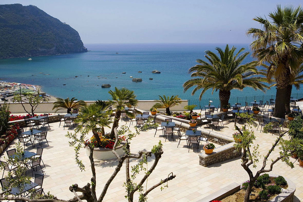 La struttura dell’albergo consta di un edificio principale al cui interno si trovano alcune camere, il bar con la sua ampia terrazza che è coperta in parte, e che offre una vista di rara bellezza sulla Baia di Citara; c’è inoltre il ristorante con le sue due grandi ed eleganti sale panoramiche. Le altre stanze son ubicate nel lussureggiante giardino che mescola caratteri della mediterraneità, espressi dagli ulivi e dalla macchia mediterranea e un certo richiamo orientale, con le alte palme. Fresco e ombra, ma non solo, anche un’atmosfera rilassante che contribuisce non poco a ritrovare la forma fisica e il benessere. A tutto questo scenario si aggiunga il contesto in cui è immerso ed ecco che ci sono tutti gli ingredienti perfetti per una vacanza da sogno. Sempre nella struttura principale, invece, si trova un Centro Terme e benessere dove fruire di trattamenti rilassanti e antistress. A disposizione degli ospiti ben quattro piscine di acque termali, 2 interne e due esterne. Solarium.