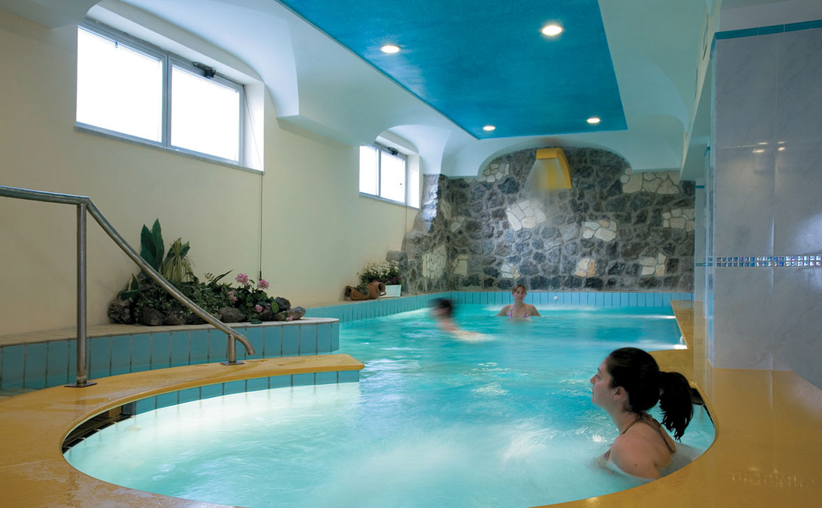 Impossibile resistere alla favolosa piscina all’aperto che si protende proprio verso l’azzurro del mare dall’alto di una terrazza, o non concedersi una pausa al sole nell’attrezzato solarium. Ma ancor di più come non cedere alle invitanti acque della piscina termale interna, aperta anche durante i mesi di bassa stagione? Il centro termale è moderno ed elegante ed è stato rinnovato di recente. Qui si possono provare i diversi trattamenti come le cure inalatorie o la fango terapia, ma anche tanti trattamenti di bellezza, come le cure udermiche, atte a ridonare elasticità e tono a pelle e muscoli. A disposizione degli ospiti anche saune, bagni turchi, docce e bagni termali, frigidarium e un percorso Kneipp. Non poteva però mancare una palestra accessoriata e moderna dove ritrovare anche la forma fisica e rimanere in attività pur rilassandosi in vacanza.