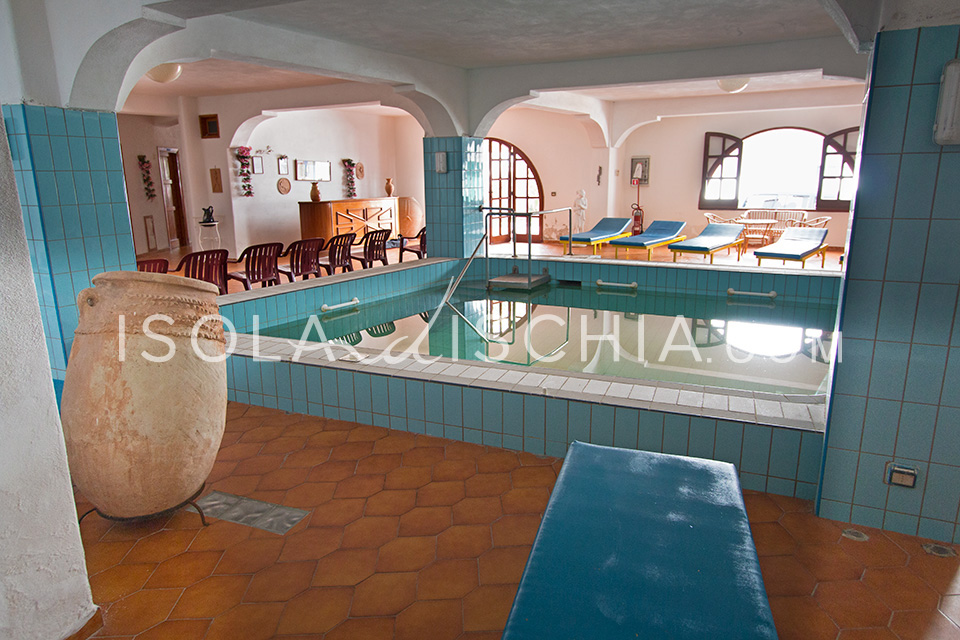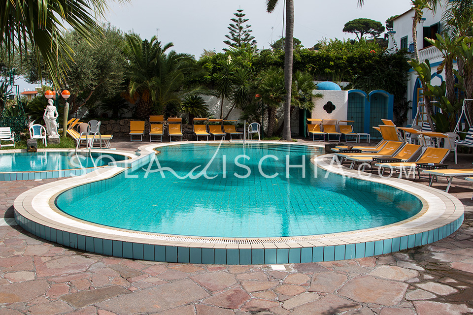 Le piscine son ben tre, tutte alimentate con acque termali provenienti da una delle fonti più antiche e apprezzate dell’isola di Ischia, la rinomata fonte del Monte Tabor, un’antica fonte già apprezzata dai romani per le sue proprietà curative per reumatismi e per i trattamenti estetici con i fanghi. Le piscine esterne sono attorniate dal solarium che tra l’ombra della vegetazione e il sole regalano ore piacevoli sulle sdraio o sui lettini, o magari anche un’occasione per sorseggiare un gustoso e fresco drink.