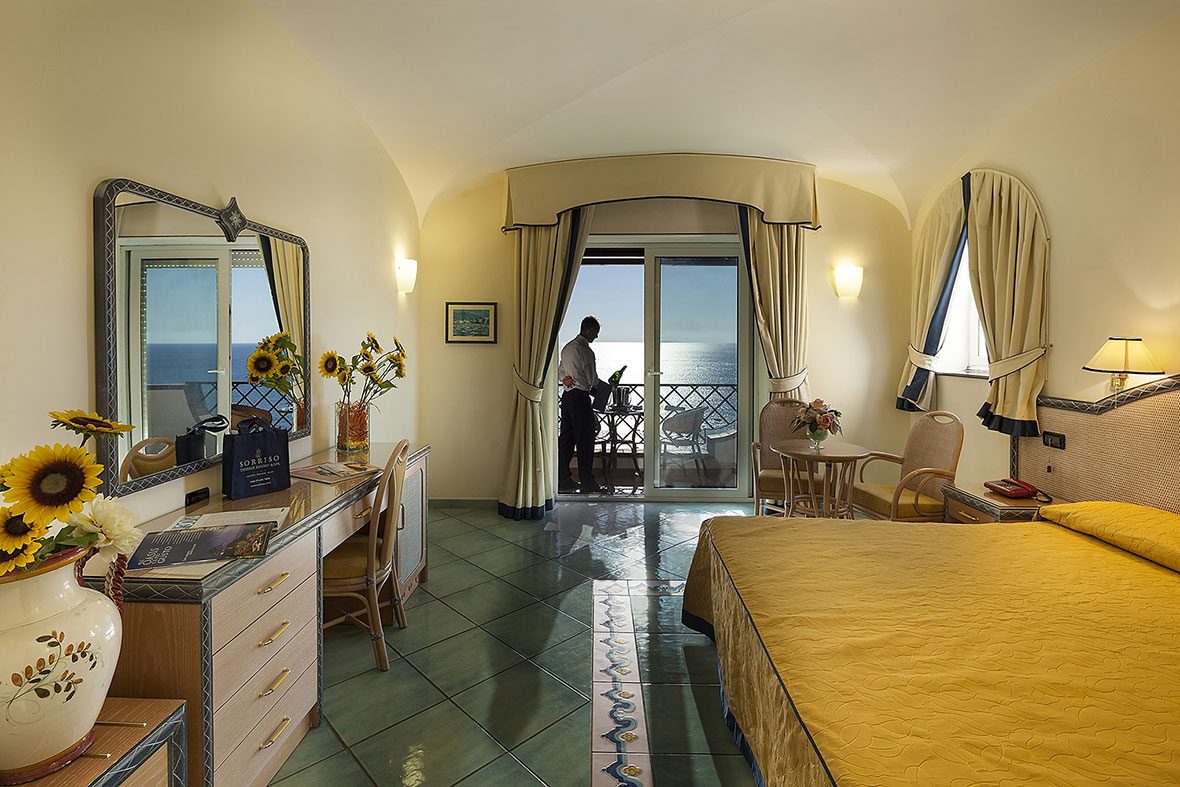 Queste camere sono molto ampie, arredate in modo elegante e curato, in stile mediterraneo nelle tonalità ocra e blu, con tessuti raffinati e con piastrelle artigianali. Hanno un balcone vista mare, in certi casi due, oppure il bagno con vasca idromassaggio. Per quanto riguarda i servizi: aria condizionata-riscaldamento autonomi, TV LCD, cassaforte, minibar e telefono.